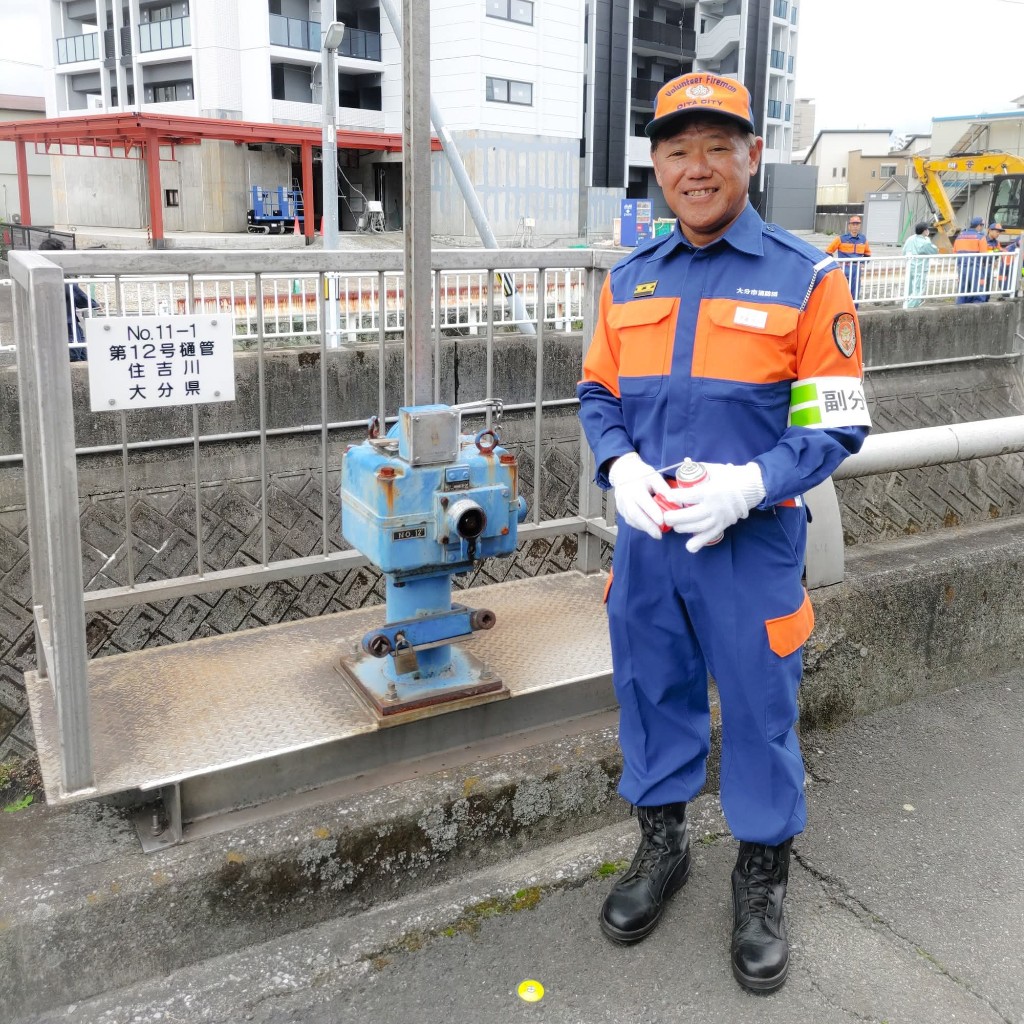 所属する消防団(大道分団)の活動で地元・住吉川に設置されている水門の点検を行いました。