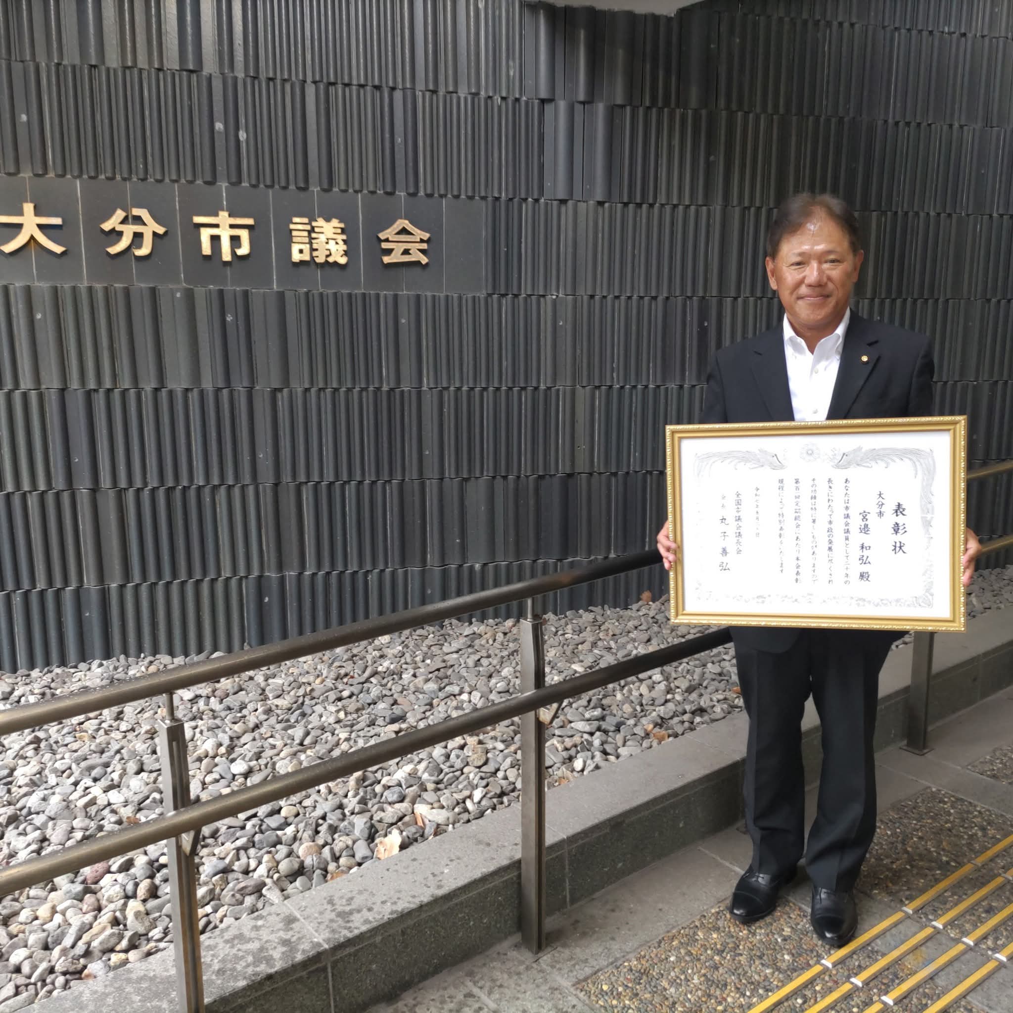 この度、全国市議会議長会から市議会議員在職20年の表彰を受け、大分市議会令和7年第2回定例会におきまして、表彰の伝達が行われました。