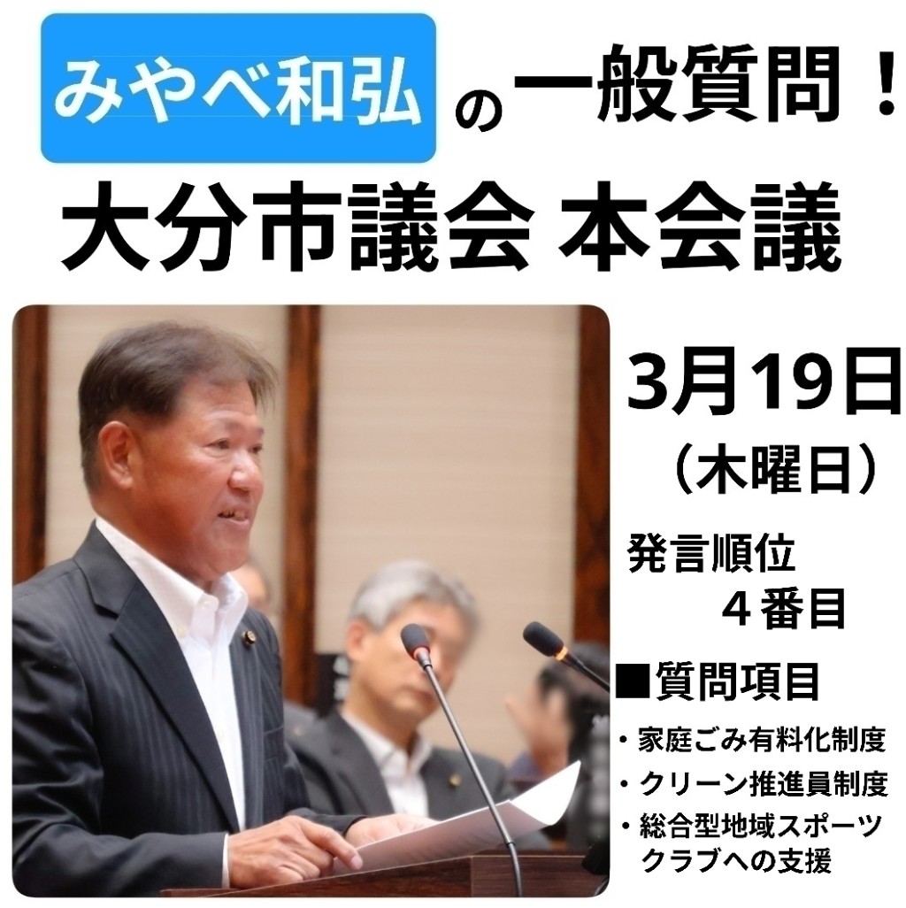 大分市議会の令和8年第1回定例会で一般質問を行いました。